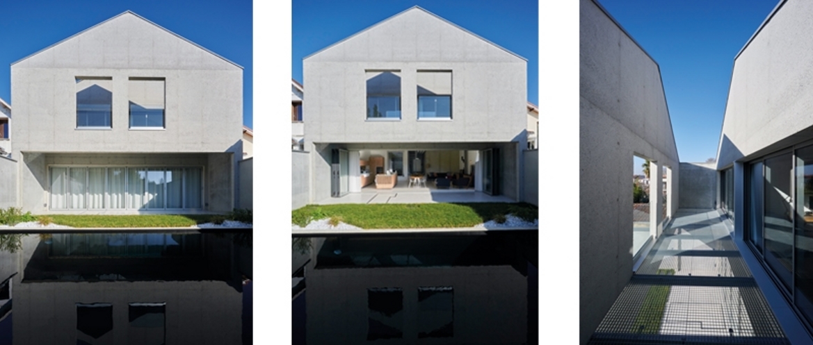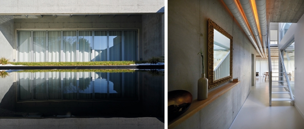 La maison est également en rupture par sa matérialité, sa texture en béton brut, et par son absence d’ornements.