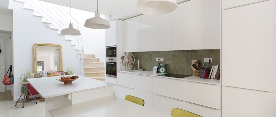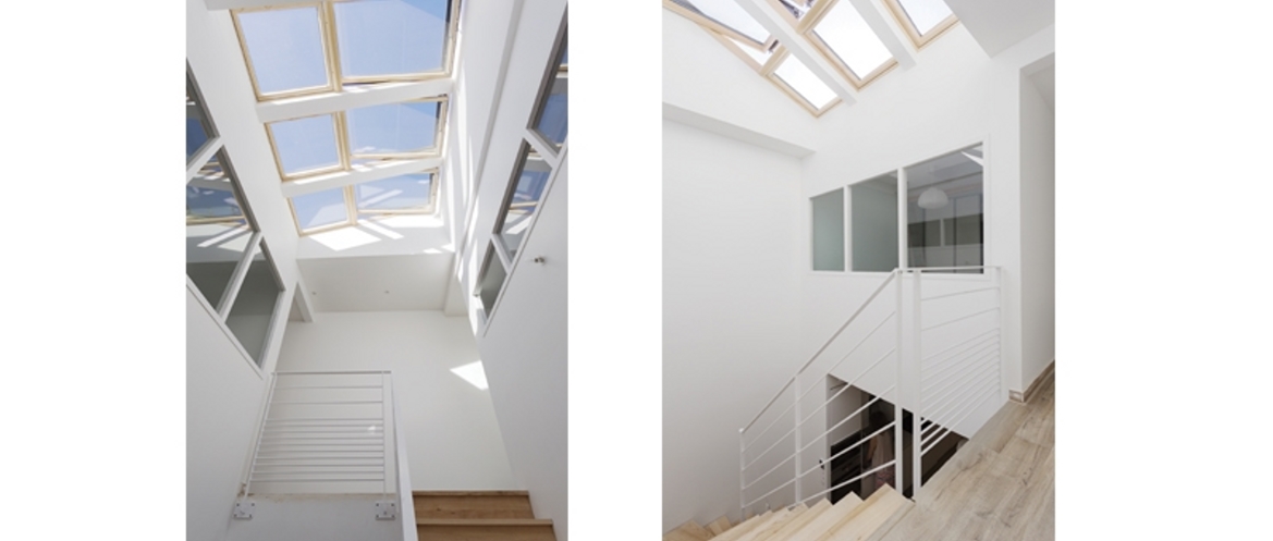 Le projet comprend une extension et une surélévation d’une petite maison située rue Henri Desbals à Toulouse. La parcelle est très étroite avec une largeur de 4,10 m entre limites séparatives. Cette configuration a entraîné une composition très linéaire du projet sur une longueur de 17 m dans les limites du P.L.U. De la maison existante, il ne reste que la façade sur rue ; l’extension a été réalisé en maçonnerie au rez-de-chaussée et la surélévation en ossature bois avec une toiture terrasse. La partie centrale de la construction a été évidée et dotée d’une verrière afin d’apporter de la lumière naturelle au coeur de la maison et pour les pièces ne disposant pas d’ouverture en façade. La surface habitable a presque été doublée, l’opération réalisée pour un coût de 1250 € HT/m2.