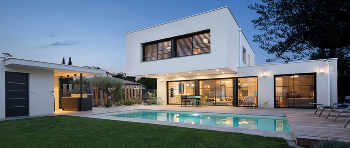 Volontairement, le parti pris est de favoriser une architecture minimaliste et contemporaine, et compte tenu de la forme du terrain, la villa est orientée Nord/Sud.