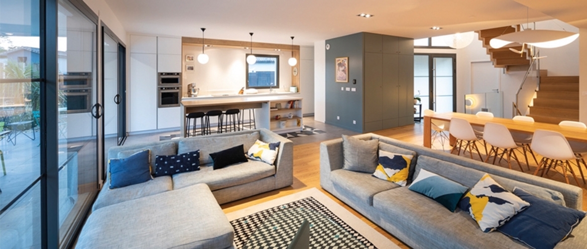 Située à Toulouse, cette maison individuelle contemporaine offre une superficie de plus de 160 m2 habitables. Implantée sur un terrain plat, la villa bénéficie d’un paysage environnant des plus agréables.