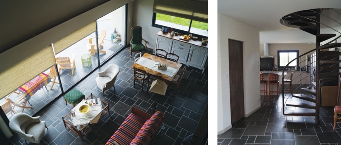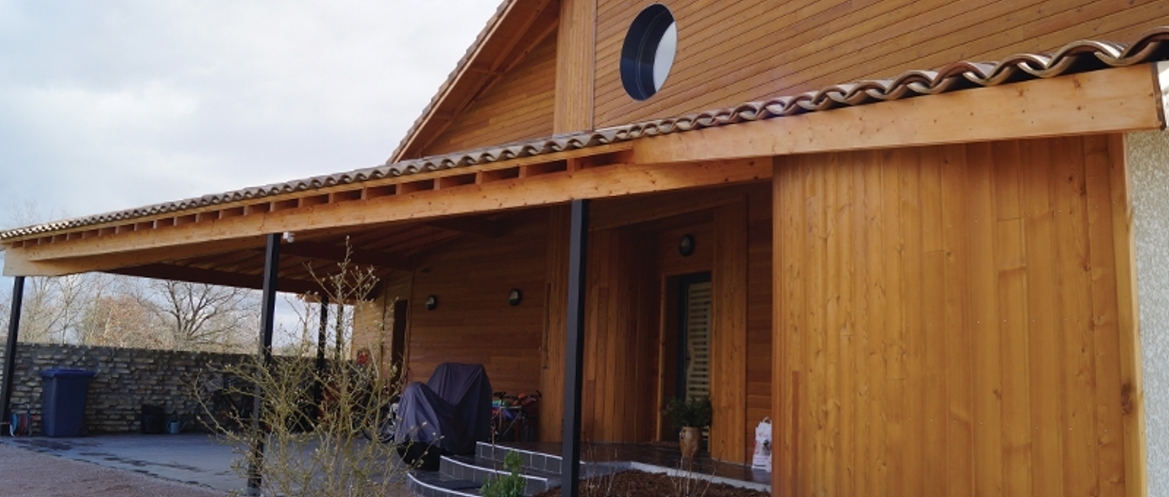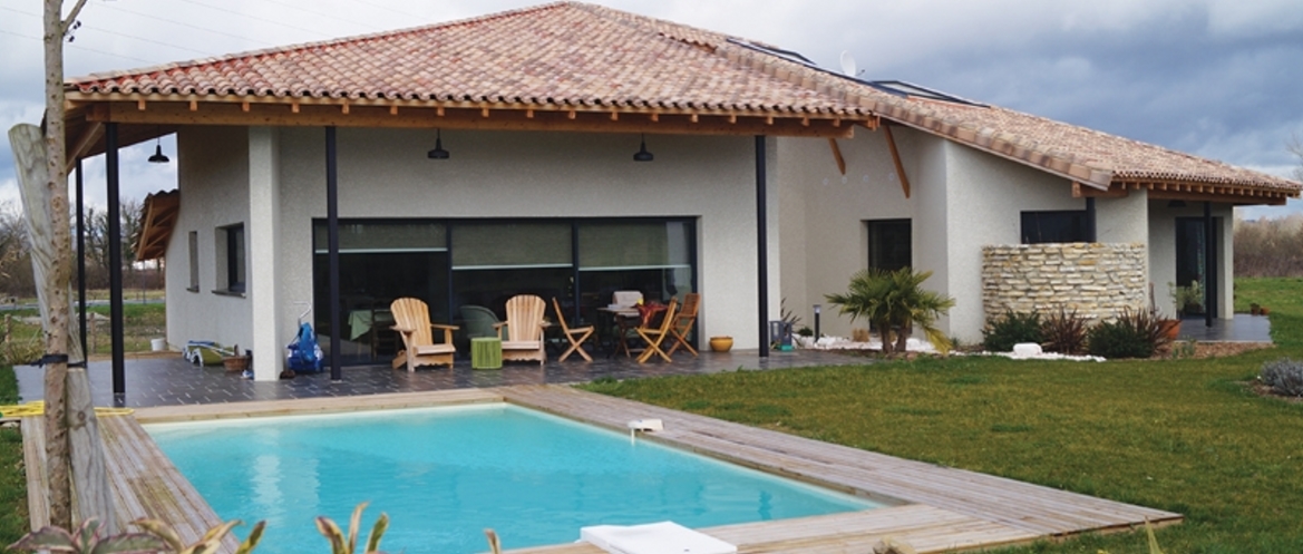 « Un bijou japonais » sur le golf de Montauban ! La construction reste fidèle aux lignes d’architecture qui caractérise l’architecte. A savoir, l’ossature-bois, le refus de lignes parallélépipédiques et toitures conventionnelles, un colimaçon vers une mezzanine accueillante sur terrasse, un plancher chauffant carrelé par pompe « Air-eau », isolation par ouate projetée, menuiseries alu double vitrage argon, du « dedans - dehors - dedans » quel que soit l’endroit dans la maison, façades associées au crépis et bardage bois, large abri voiture, salles de bains s’ouvrant sur des micro jardins fermés et privatifs. Du « zen » sur chacun des 170 m² habitables que ce soit en séjour, cuisine ouverte ou chambres. Une cuisine ouverte sur séjour qui va plonger dans une piscine en bout de terrasse. Un environnement idéal de verdure qui se fond avec un jardin paysagé digne de ceux vus au pays du Soleil Levant.