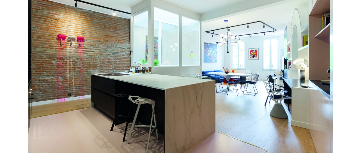 Au début, il n’y avait rien. Un grand appartement délabré qui attendait depuis 20 ans d’être refait. Le terrainde jeu idéal : ce lieu s’apprêtait à devenir une ode à Toulouse et un entremêlement d’art et de couleurs.